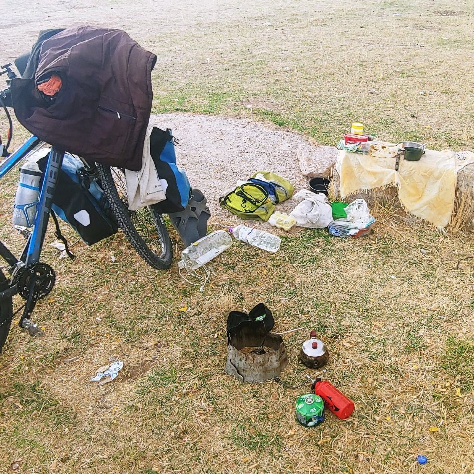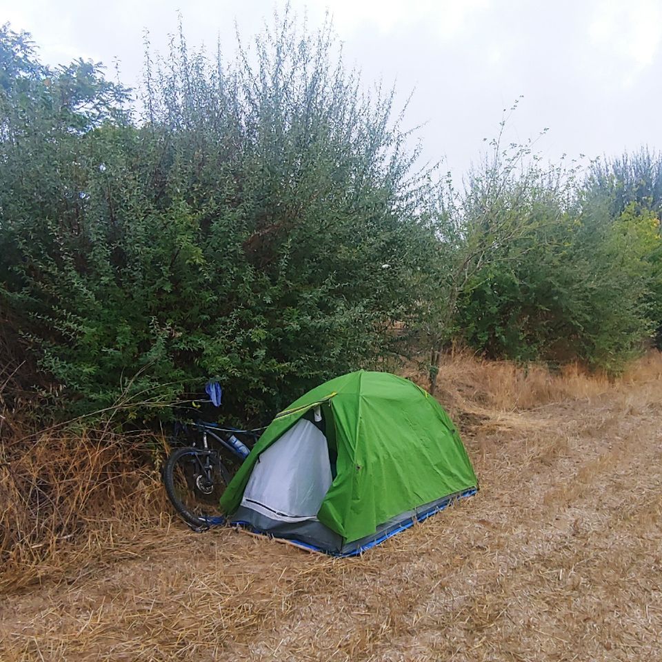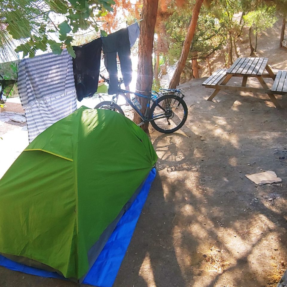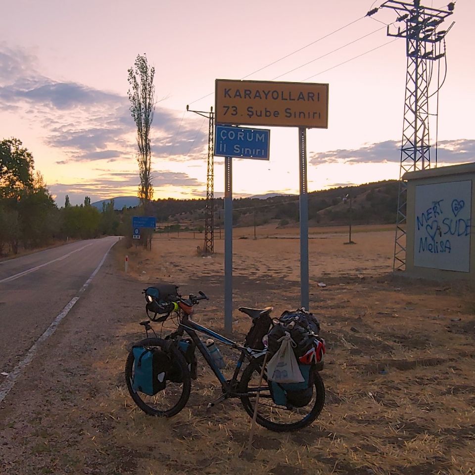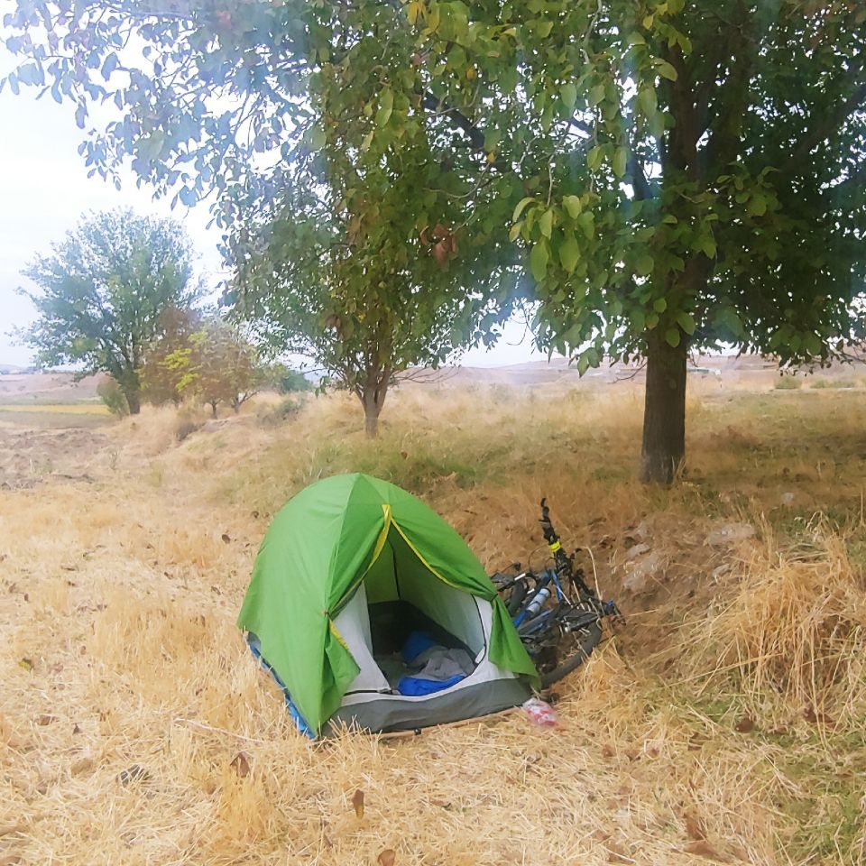 İskilip’te kamp yerlerinin sıkıntılı olduğunu Şafak ağabeyin videosundan aşinaydım. Tırmanış ile eş zamanlı olarak muhtemel alanları tarıyordum. İlçe tabelasına ve çeşneye yakın kamp noktasını tespit edip alışverişe gidip döndüm. İlk işim çadırı kurmak oldu. Eşyaları yerleştirdikten sonra yarınki zorlu yolculuğum için yemek yeyip dinlenmeye çekildim. Sabah güncelleme: Yorgun argın gelip çadırı aceleyle kurduğum için zemini pek düzlemekle uğraşmadığım için pek konforlu bir gece geçirdiğim söylenemez. Başlangıçta yorgunken bir rahatsızlık vermesede vücut dinlendikçe rahatsız olmaya başladım.