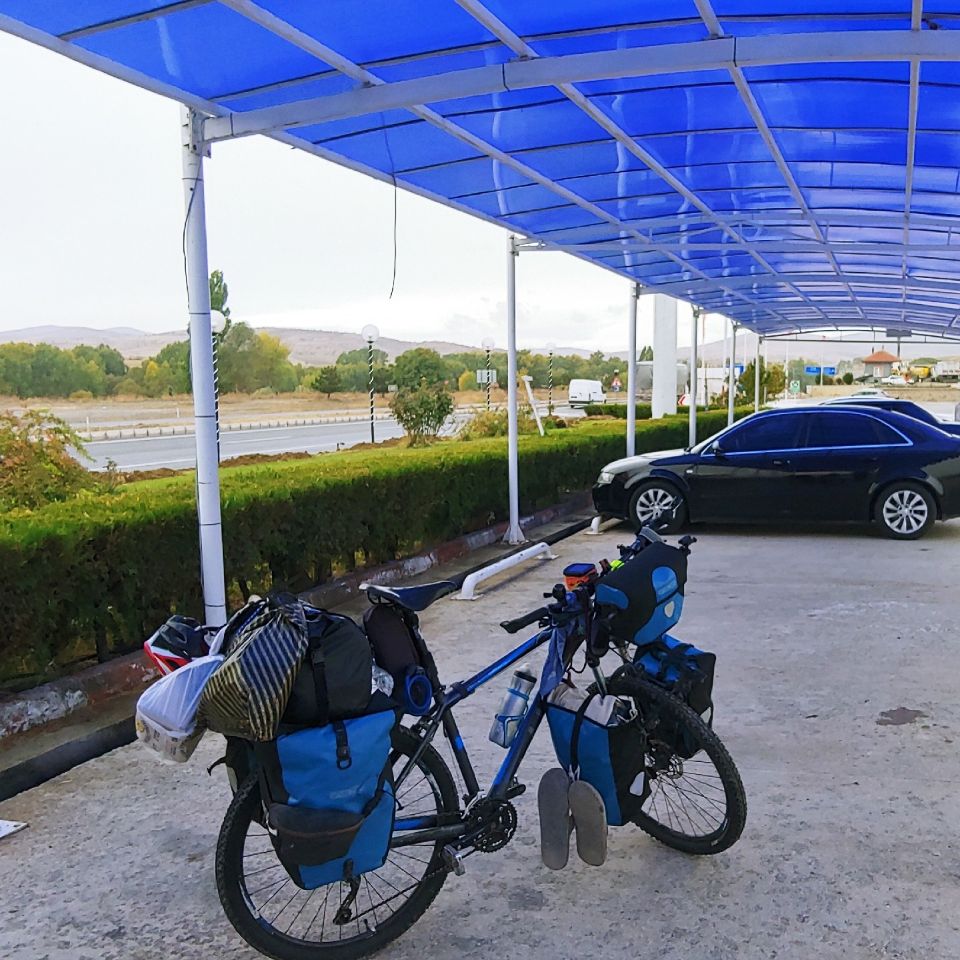 Mezarlık civarındaki parktan yaklaşık bir kilometre ilerledikten sonra, gözüme kamp kurmaya elverişli bir benzinliğin alanı çarptı. Hemen çalışanların bulunduğu yazıhaneye gidip müsade istedim. Olumlu yanıt almanın rahatlığıyla çadırı kurmaya hazırlanırken, çalışanlardan Recep beni çaya davet etti. Çay eşliğinde “Nereden gelip nereye gidersin?” ile başlayan samimi sohbetimiz koyulaştı. Muhabbet ilerledikçe Recep’in cömertliği bir üst seviyeye çıktı ve “Hiç çadırla uğraşma!” diyerek içerideki çekyatı gösterdi. Böylece, bisikletimi de içeri alıp sadece uyku tulumumu çıkararak hızla yerleştim. Recep ve arkadaşı (Yerköylü) Yasin ile geç saatlere kadar süren keyifli bir muhabbetimiz oldu. Sabah saat 7:00’de kalktığımda, sadece uyku tulumunu toplayıp çantaya koyarak hemen yola çıkmaya hazırdım. Ancak, kahvaltı ve sıcak sohbet yüzünden yolculuğa başlama saatim 9:00’u buldu. Bu beklenmedik misafirperverlik, zorlu bir günün ardından sadece güvenli bir gece değil, aynı zamanda dostça bir vedalaşma da sunmuş oldu.Çayıralan – Sarıkaya Yolu (66-33)