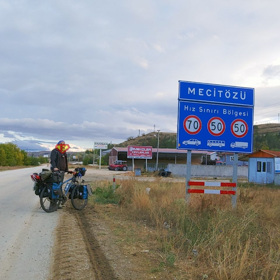 Mecitözü’ne havanın kararmasına yakın geldim. Gözüme kamp yapabileceğim park, bahçe gibi bir yer ilişmedi. En kötü ihtimalle bir okul bahçesini cebe koyup akşam yemeği alışverişi yaptıktan sonra, marketin karşısındaki benzinlikte ağaç gölgesinde bir bank dikkatimi çekti. Hemen gidip burada bu gece çadır kurup kuramayacağımı sordum. İstasyonun sahibi Ali ağabeyden olumlu cevap alınca önce yemek işini aradan çıkarıp çadırı kurup eşyaları yerleştirdim. İstasyon çalışan Mustafa ağabeyle biraz sohbet ettikten sonra 21:00 dinlenmeye çekildim. Sabah 07:00 gibi Mustafa ağabeyin “-Ferdiii!” nidası ile uyandım çay demlemiş, çay içtik beraber. Sonra çadırı toparlayıp kahvaltıyı yapıp yolla koyuldum.