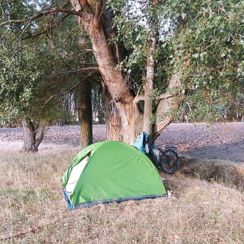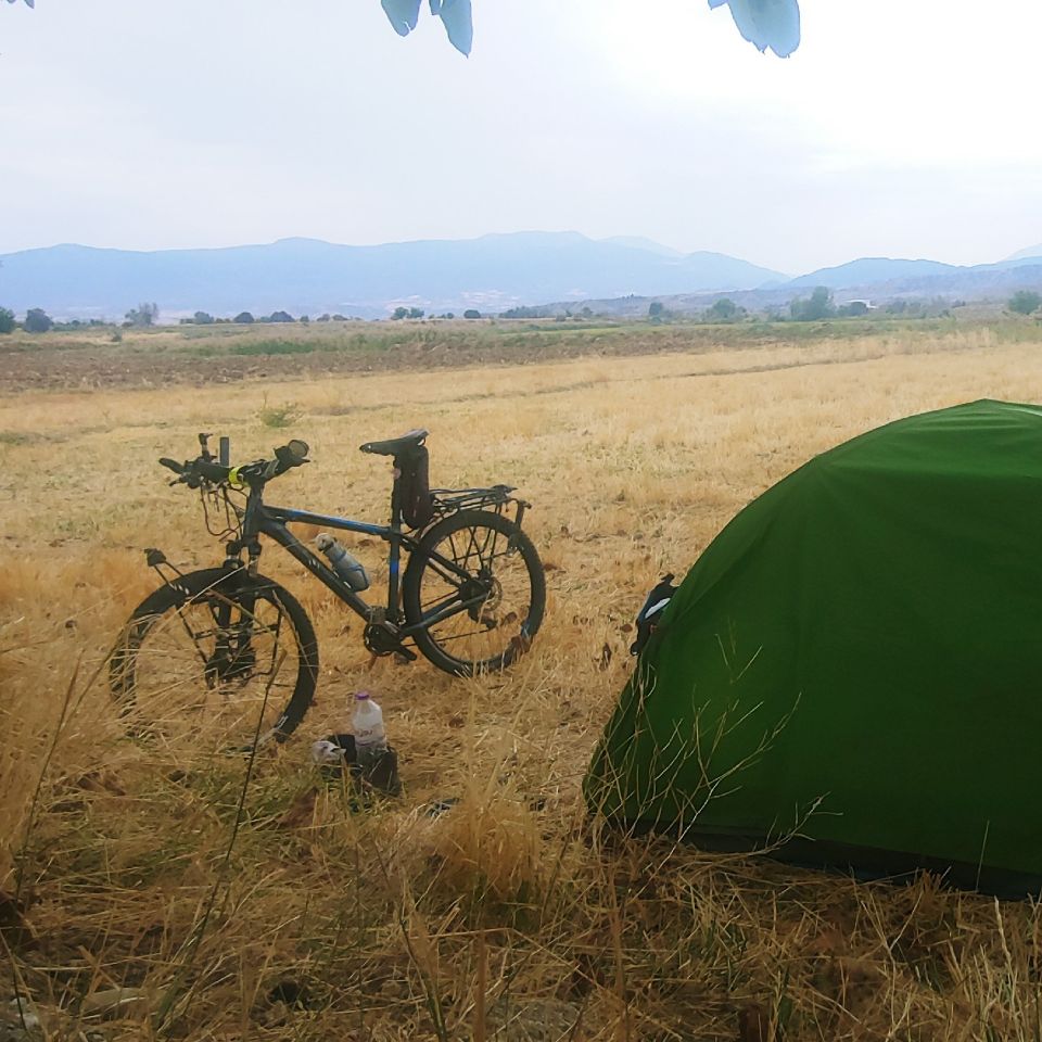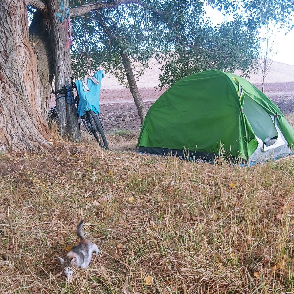 Aslında bu köyde kalmak gibi bir düşüncem yoktu. Ta ki köyün çıkışındaki o kavaklığı görene kadar. Güneşin batmasına bir saatten fazla vardı ama içimden bir ses “burada kal” dedi, ani bir kararla durdum. Hava kararmadan çadır kuracağım yeri belirledim, zemini düzeltip altına biraz saman yaydım, Anadolu’nun beş yıldızlı yatak sistemi. sonra çadırı kurup yerleştim. Yemekten sonra powerbank’ı şarja koymak için camiye gittim. Cami bahçesindeki bankı görünce “sabah geldiğimde kahvaltıyı da burada yaparım” diye geçirdim içimden. Nitekim sabah erkenden camiye uğradım, orada Fahrettin adında bir ağabeyle tanıştım. Laf lafı açtı, güzel bir sohbete daldık. Bana getirdiği ekmek ve domatesle kahvaltım bir anda organik köy kahvaltısına dönüştü. Kahvaltıdan sonra köyden ayrıldım. Geriye sadece birkaç kare fotoğraf değil, küçük ama iç ısıtan bir anı kaldı: plansız bir duraklamanın, güzel bir karşılaşmaya dönüşmesi.