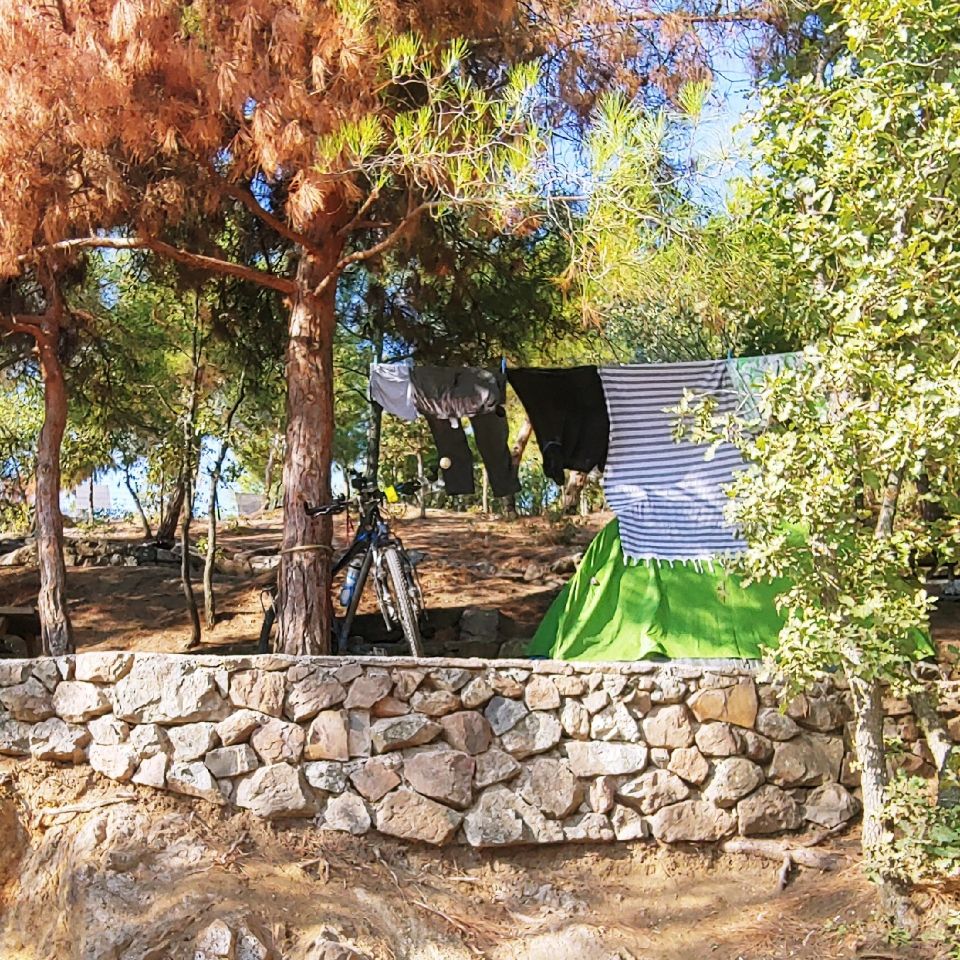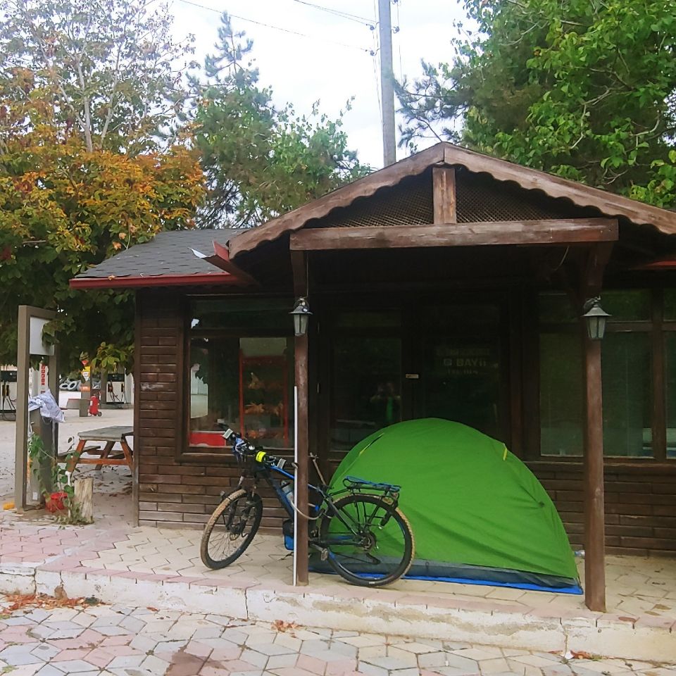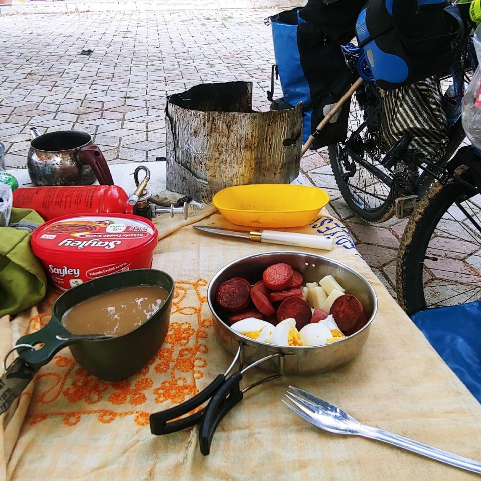 Jandarma eskortu ile mesire alanına fiyakalı bir giriş yaptıktan piknik masalarının olduğu bölümde zevkime göre ne çok ayak altı ne de sotede bir teras seçtim. Biraz dinlenip soluklandıktan sonra tuvalet ve kaba temizlik işlerinden sonra yemek işine giriştim. Yemeğin ardından çay iyi gitti. Çadırı kurduktan sonra önce yakındaki işletmeye power bankı şarja bıraktım daha sonra önceden tespit ettiğim hortumu olana çeşmede duş ve çamaşır işini hallettim. Çamaşırları astıktan sonra dinlenmeye çekildim. Bugün efsane zorlukta bir gün oldu, iyi bir dinlenmeyi hak ettim. Sabah güncellemesi: Sabah 7 gibi uyandım tuvalet işini halledip kimseler gelmeden fotoğraf video çektikten sonra tam kahvaltı işlerine girişecekken belediyeye ait Altın Koz tesisletinin güvenliği Saadettin aga çay içmeye davet etti sohbet muhabbet uzadı birde üstüne sucuklu yumurta gelince saat 9 oldu, haliyle benim kahvaltıyada gerek kalmadı. Toparlanıp yola çıkmam 10:00 u buldu. Bugün biraz saldım, dünkü yorgunluğun üzerine bugün pek acele etmiyorum..