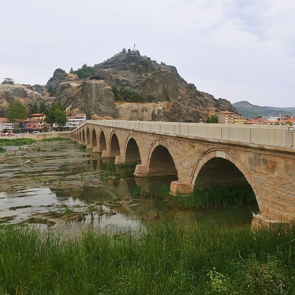 Daha önce havanın güzelleştiğini söylesem de, yolculuğum hiç de günlük güneşlik değildi. Yağmur, farklı şiddetlerde çiseleyerek yağıyor ve rüzgâr sürekli karşıdan esiyordu. Bu zorlu şartlar altında ilerliyordum, ancak toplamda 30 kilometrelik Sorgun-Yozgat mesafesini, saat 16:00’daki otobüse yetişmek için yeterli zamanım olduğu için telaş yapmıyordum. Yolun büyük bir kısmı, Çorum sapağına kadar düzlüktü. Molalarımı mescit ve çeşmelerde vererek ilerledim. Sadece Çorum sapağına çok az kala, yağmurun şiddeti aşırı artınca bir benzinliğin üstü kapalı otoparkında kısa bir bekleme yapmak zorunda kaldım. Mola ve dinlenmelerle ilerleyen tempoda, planlanan otobüse yetişme hedefi yolculuk motivasyonumu yüksek tutuyordu.Tarihi Çalatlı Köprüsü