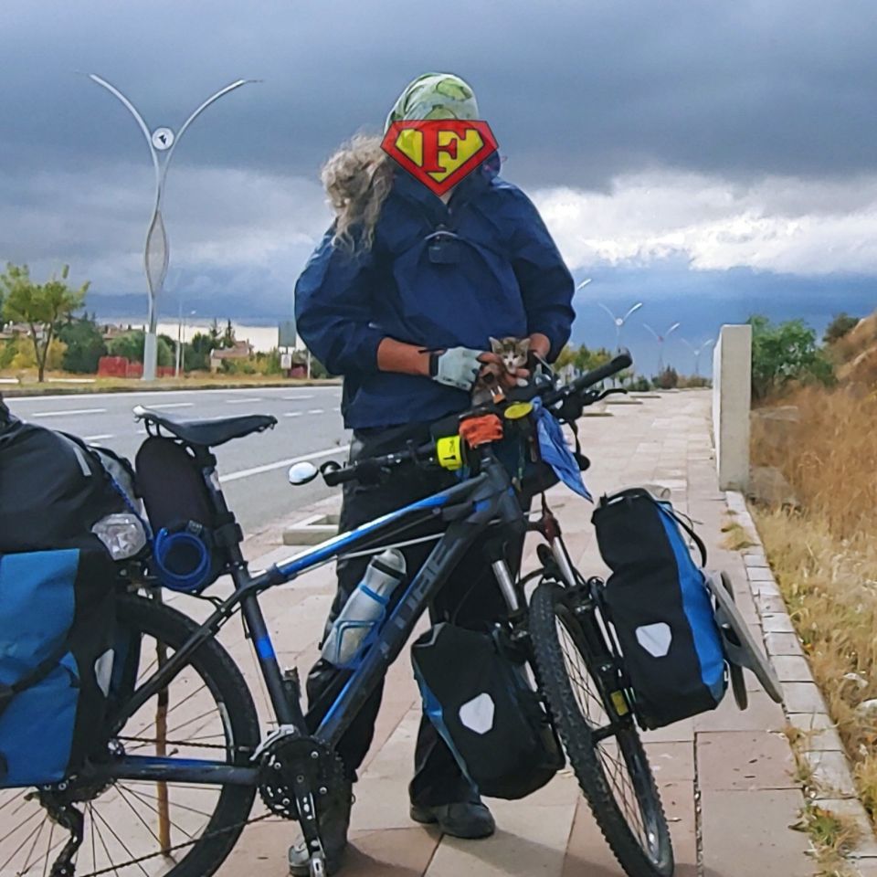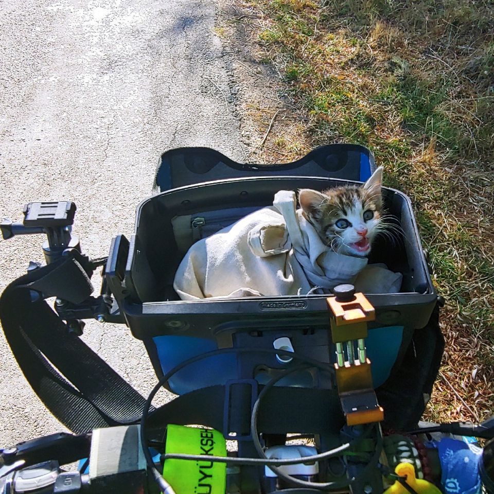 Tekkegüney Köyü ile Özer Köyü arasında yol alırken bir yerlerden kısık bir miyavlama duydum. Sesin geldiği yere baktığımda, karşımda tatlı mı tatlı bir yavru kedi duruyordu. Küçücük bedeniyle ayağıma dolanıyor, bisikletin üstüne, oradan sırtıma tırmanıyordu. Aç olabileceğini düşündüm, biraz peynir verdim. Peyniri yedi ama gideceğine daha da bana yanaştı — tam bir sevgi arsızı! Yola çıkmaya hazırlanırken peşimden gelmeye başladı. Yolda ezilmesin diye “en azından ilerideki köye bırakayım da başına bir şey gelmesin” dedim. Ama öyle bir inadı vardı ki, her seferinde beni buldu. Ne kadar uzağa bıraksam, koşup tekrar yanıma geldi. Bir ara bahçeye koydum, duvarı tırmanıp yine önüme çıktı. O an dedim ki: “Bu kadar azim boşuna olamaz, vardır bir hayır bu işte.” Ben aslında onu bırakmaya çalışıyordum ama belli ki o beni seçmişti. Ne kıyabiliyordum, ne de ne yapacağımı biliyordum. Cebime koydum olmadı, tişörtümün içine koydum olmadı. En sonunda bez torbaya yerleştirdim, onu da gidon çantasına oturttum. Ama çantanın kapağını kapatınca hemen mırıldanıyor, illa yüzümü görmek istiyor. Kahrolası cazibem! ???? En sonunda başını dışarıda bırakacak şekilde yerleştirdim. Düz yolda bakışıyoruz, rampada sohbet ediyoruz, inişlerde güvenlik modu: çanta kapalı. Şimdilik sistem çalışıyor ama ileride ne olur bilmiyorum. Ona iyi bakabilecek birini bulursam belki teslim ederim ama kalbim diyor ki bu yol arkadaşlığı kolay kopmaz. Aramızda çoktan bir bağ oluştu bile. Ama şu bir gerçek: Yıllar sonra kalbimi çalmayı başaran bir hanım çıktı karşıma. Hem de dört patili, kuyruklu, mırıldayan bir hanım. ❤️ Yolun üstünde bazen harita dışı bir yer değil, kalbine düşen küçücük bir canlı değiştiriyor tüm rotanı.