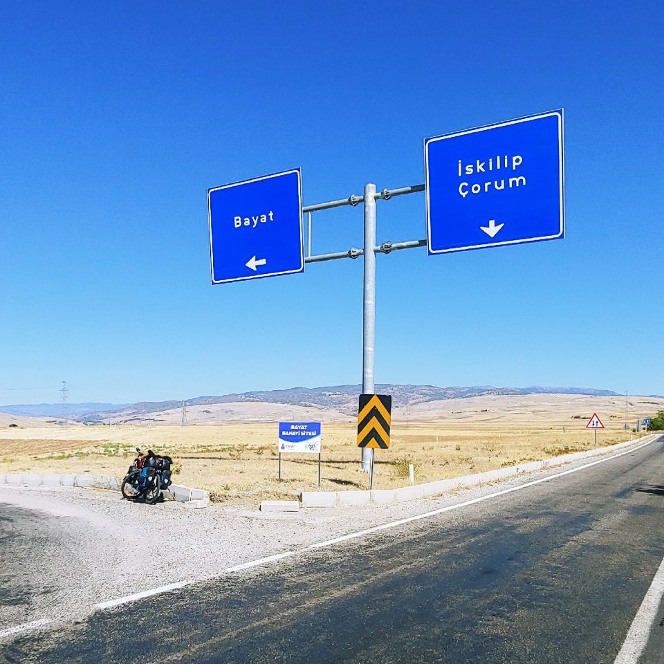 İstikamet Bayat! Kısa süreli olarak D180-02 karayolundan ayrılıp 19-77 numaralı karayolunda 10 kilometre gidip Bayat ilçesini ziyaret edeceğim. Sonra aynı yolu geri gelip yoluma devam edeceğim.